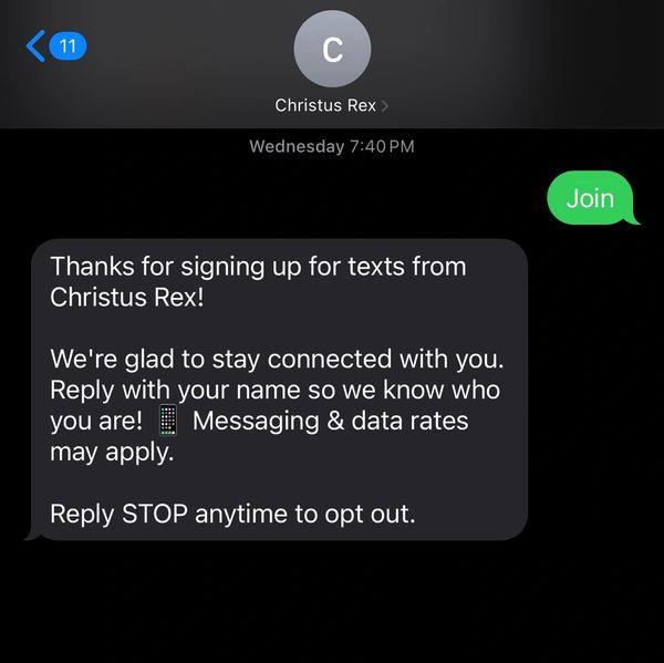 I understand I am signing up to receive Texts from Christus Rex. Standard Text Message rates apply. you may reply STOP to cancel at any time.